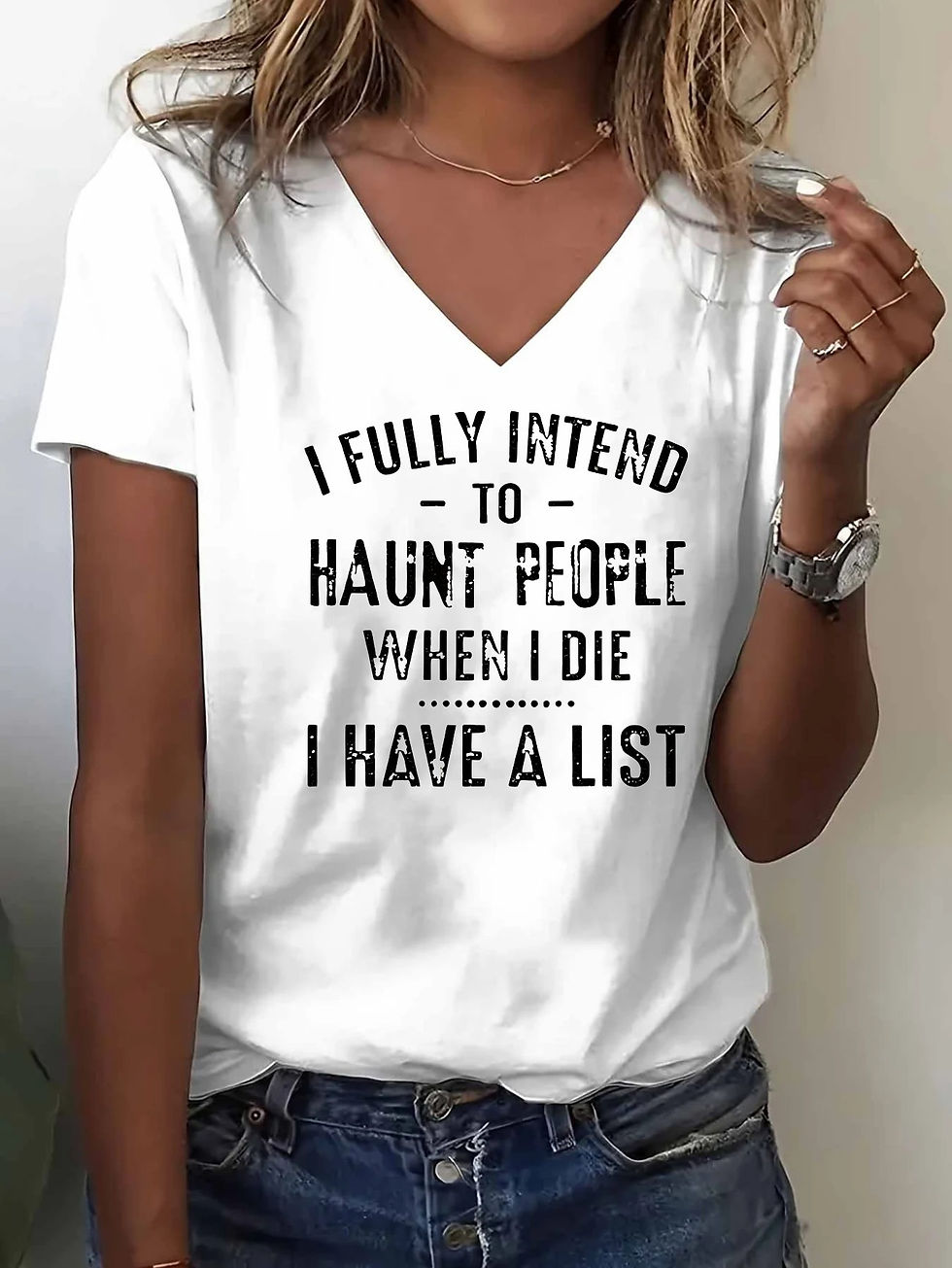 Women'S Humorous "Ghost List" Printed V-neck T-shirt- Casual Short Sleeve Top, S